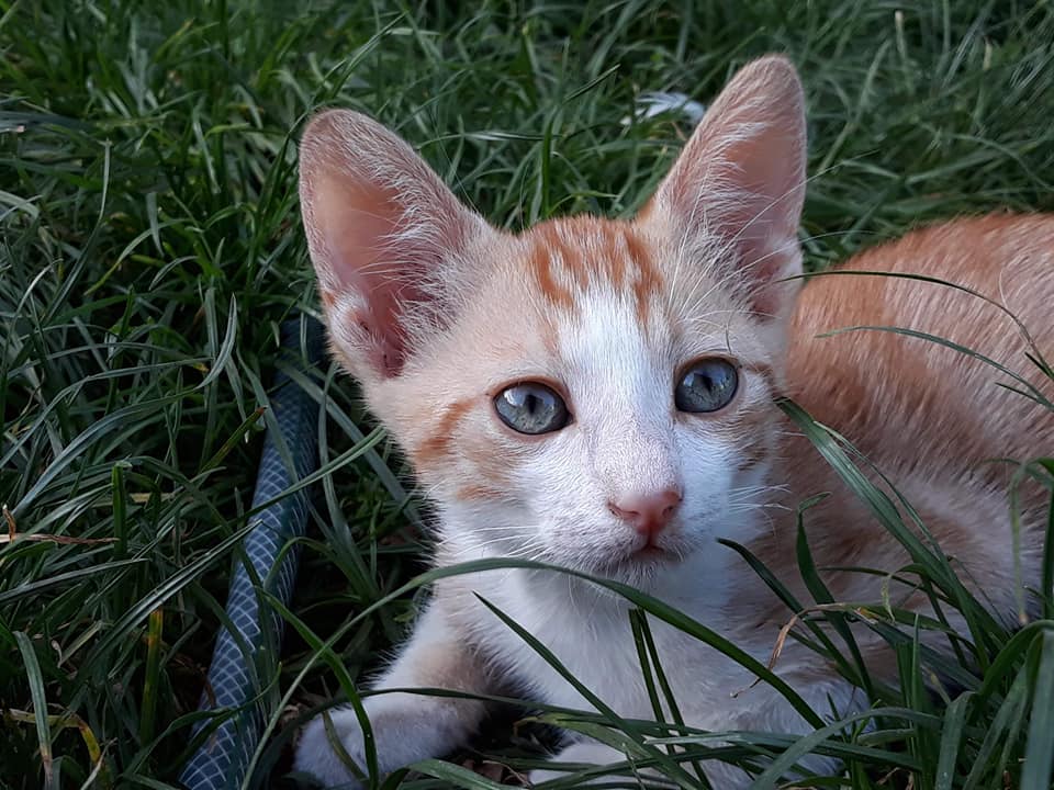 Smarandel and Smarandita (Romanian names) were abandoned in a plastic bag only few days old. They were 3 but one didn’t survive even though we struggled to feed them with milk bottles. These two, boy and girl, grew up healthy and they are in foster with a Romanian family but they can’t stay there forever. They are up for adoption, together since they are so atached to each other, and they are used to cats, dogs, love of all kind.